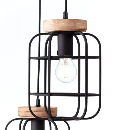 Beschrijving Brilliant Gwen Hanglamp Metaal Hout Zwart | 420mm - Geschikt voor 3x E27