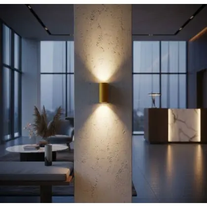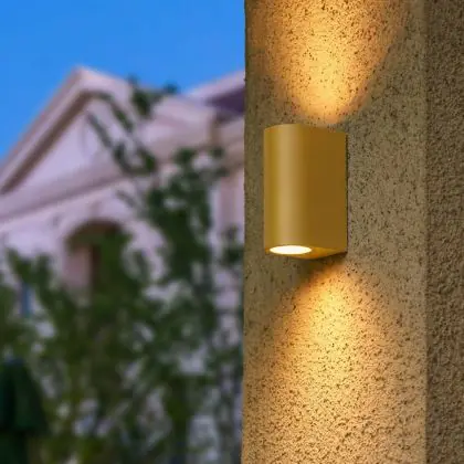 Beschrijving D'Lite Wandlamp Vossem Aluminium Goud | IP54 - Geschikt voor 2x GU10