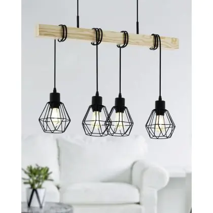 Eglo Hanglamp Townshend 5 Staal Hout Zwart | IP20 - Geschikt voor 4x E27