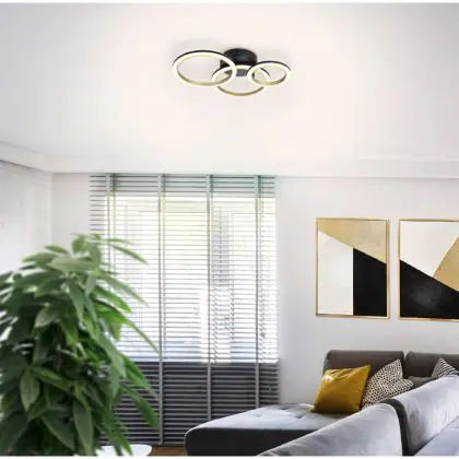 Beschrijving Eglo Plafondlamp Calliera Staal Zwart, Messing 20W 2500lm - 830 Warm Wit | Dimbaar