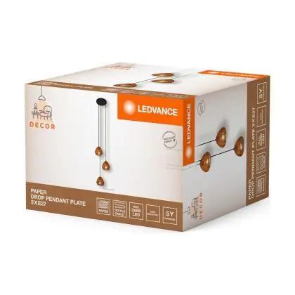 Beschrijving Ledvance Decor Papier Drop Gips/Staal Pendelarmatuur Beige | Geschikt voor 3X E27