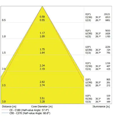 De gradenbundel geeft informatie over hoe breed het licht wordt uitgestraald. Dit zit tussen de 0 en 360 graden (D). Hoe kleiner de hoek, hoe specifieker de lichtbundel is. Over het algemeen is een smalle gradenbundel perfect voor sfeer- of accentverlichting, terwijl een brede gradenbundel ideaal is om grote oppervlaktes te verlichten.