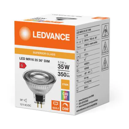 Beschrijving Ledvance LED Spot GU5.3 MR16 6.3W 355lm 36D - 927 Zeer Warm Wit | Beste Kleurweergave - Dimbaar - Vervangt 35W