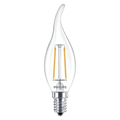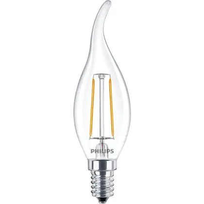 Beschrijving Philips Corepro LED Kaars E14 gebogen punt Filament Helder 2W 250lm - 827 Zeer Warm Wit | Vervangt 25W